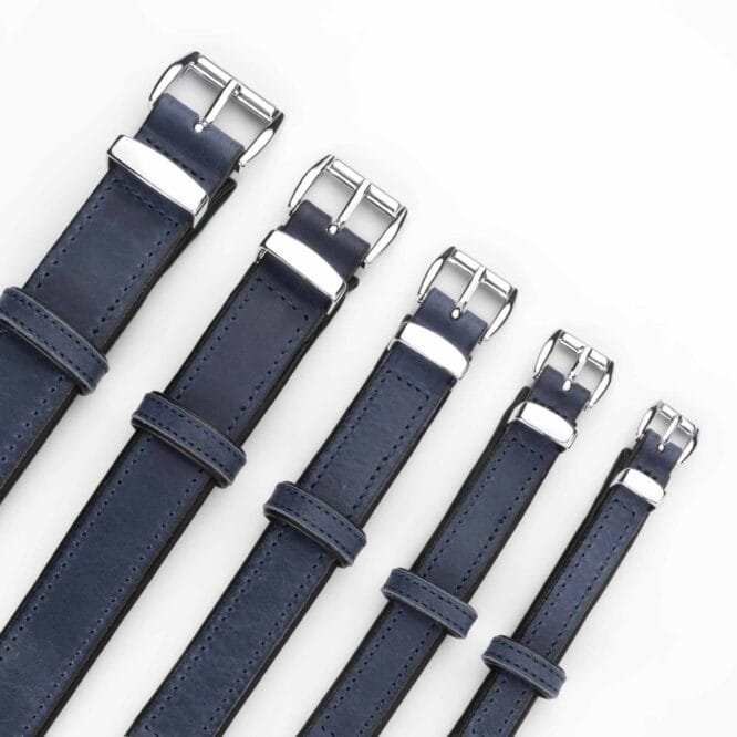 Hardware: Solid brass or rustproof surgical grade stainless steel buckle and D-ring.